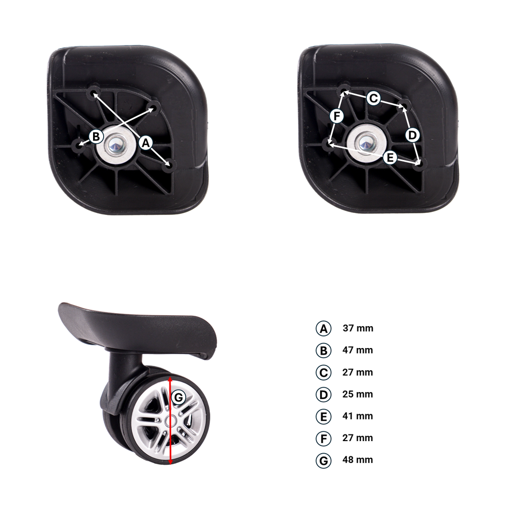 To maintain uniform height and prevent increased wear, it is recommended to replace all wheels of the suitcase simultaneously. However, if only one wheel requires replacement, we offer separate wheels with two orientations to perfectly fit onto the shell.